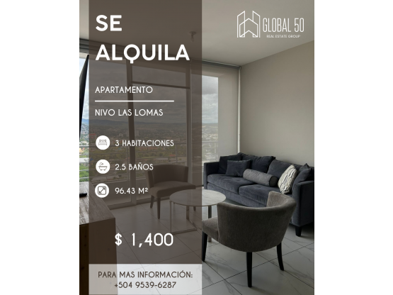 SE ALQUILA Apartamento en Torre Nivo, Lomas del Guijarro – 5to piso, Torre Este