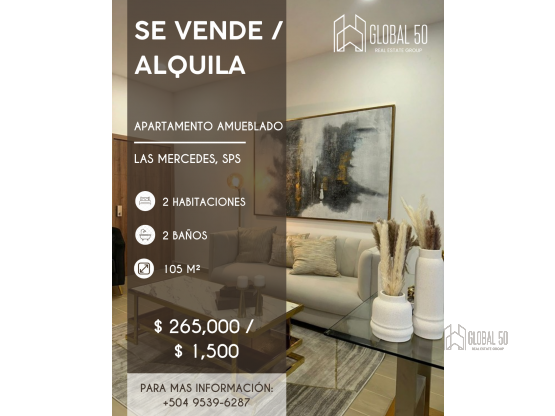 Moderno y bien distribuido apartamento ubicado en Condominios Las Mercedes, uno de los complejos residenciales más completos de San Pedro Sula. La propiedad se entrega completamente amueblada y con línea blanca incluida, lista para habitar desde el primer día.