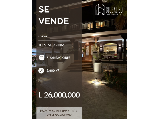 Espectacular propiedad ubicada dentro de residencial en Tela, Atlántida, a tan solo 10 minutos de Villas Telamar. Una oportunidad única para adquirir una casa de grandes dimensiones en una de las zonas turísticas y de mayor proyección de Honduras.