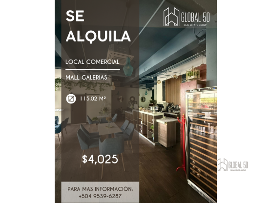 Oportunidad única de establecer tu negocio en uno de los centros comerciales más reconocidos y concurridos de Tegucigalpa. Este local de 115.02 m², ubicado en el Mall Galerías (Local 307), es ideal para restaurante u otro concepto gastronómico gracias a su ubicación estratégica y alto flujo de visitantes.