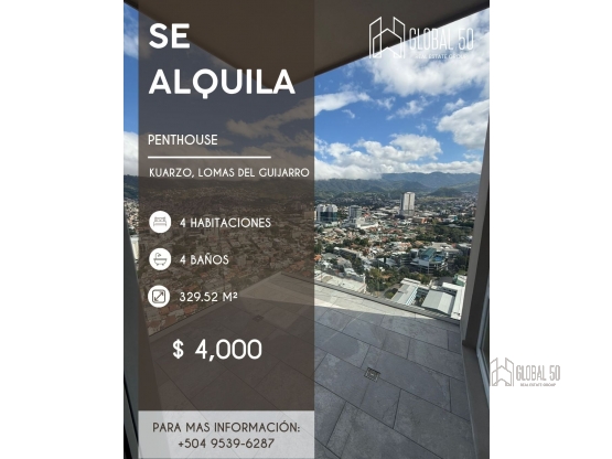 SE ALQUILA Penthouse en Torre Kuarzo, Lomas del Guijarro