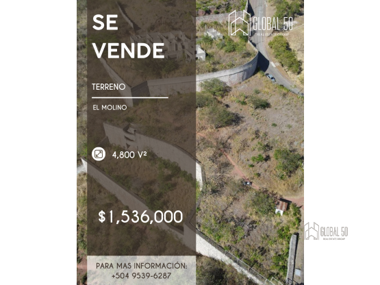 Amplio terreno de 4,800 v² ubicado en la exclusiva zona residencial de El Molino, una de las áreas de mayor prestigio y plusvalía en Tegucigalpa. Su ubicación en esquina lo convierte en una propiedad con gran potencial tanto para uso residencial como para proyectos de inversión.